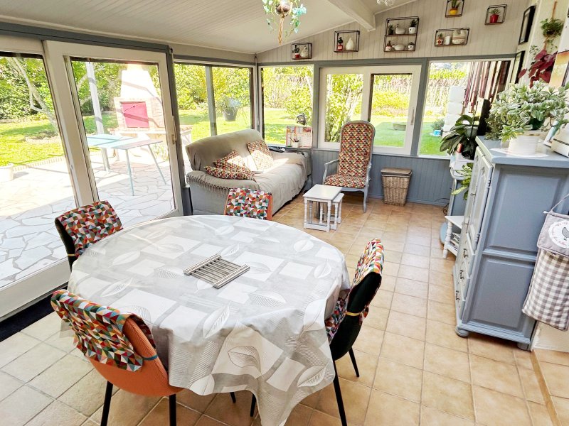 Bourg de GRANDCHAMP DES FONTAINES, en impasse au calme, un beau jardin clos d'environ 990 m² avec un portail motorisé, maison de plain pied de 110 m² environ en parfait état composée d'une entrée, un salon séjour avec cheminée insert, une cuisine tout équipée avec accès à la véranda baignée de lumière, 4 chambres, une salle d'eau avec une douche à l'italienne. Un grand garage attenant de 42 m² environ avec une cave. Le jardin calme et agréable offre une terrasse, un barbecue et un abri de jardin et un abri bois. Commerces et transports à pieds. Merci de contacter l'agence immobilière FOURNY de TREILLIERES au 06 62 38 12 85 ou 02 40 94 59 54. Les informations sur les risques auxquels ce bien est exposé sont disponibles sur le site Géorisques: www.georisques.gouv.fr. - FN_1759327638