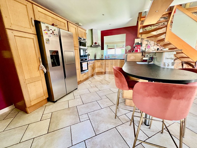 Au rez-de-chaussée, vous serez séduits par un salon-séjour cathédrale baigné de lumière, avec sa belle hauteur sous plafond, ouvert sur une cuisine aménagée et équipée.
