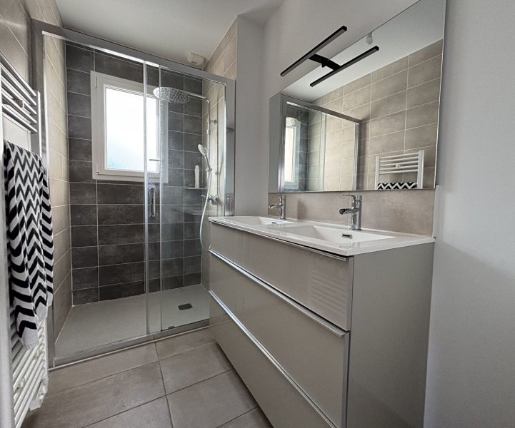 Côté nuit, vous trouverez trois chambres avec placards intégrés, ainsi qu'une salle d'eau moderne avec double vasque.