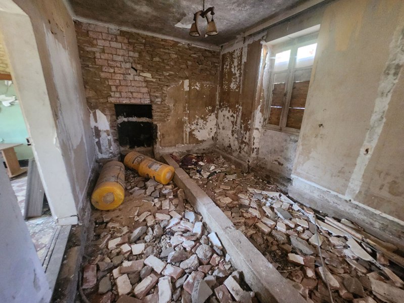 Les murs et la charpente sont sains, la couverture est à réviser et le reste à reprendre.