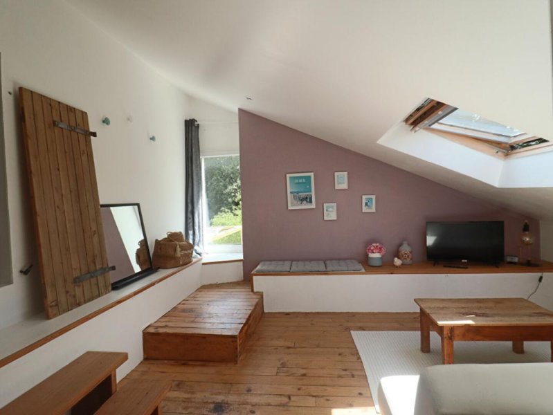 Studio attenant de 34 m² composé d"un salon cuisine, coin chambre à l'étage, salle de bain, wc.