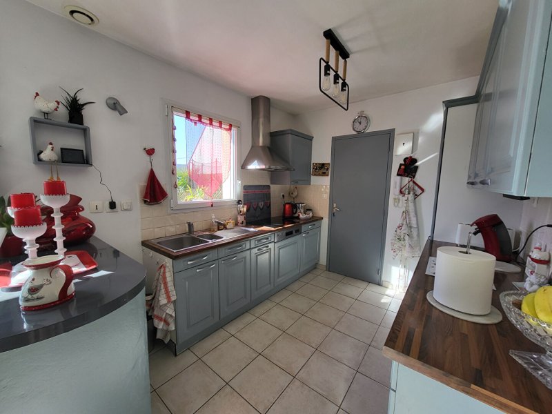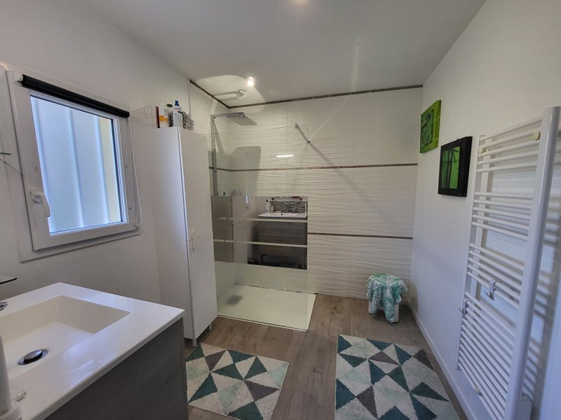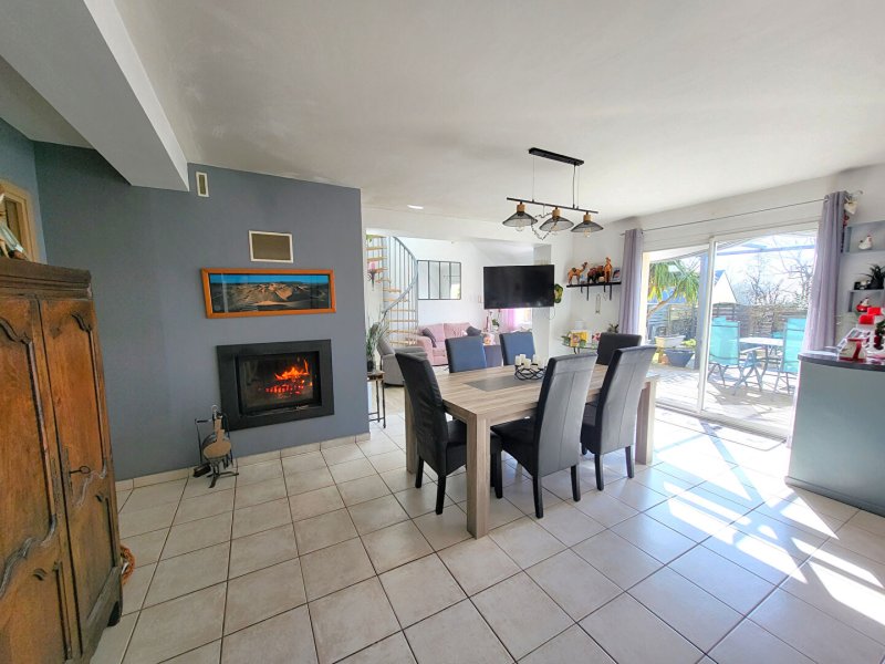 Idéalement située proche de Guérande, agréable maison d'environ 133 m² comprenant entrée avec grand placard, belle pièce de vie baignée de lumière avec cheminée insert, cuisine aménagée, terrasse, suite parentale et garage au rez-de-chaussée.