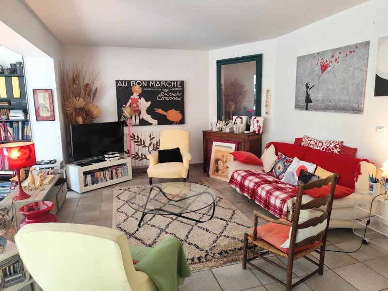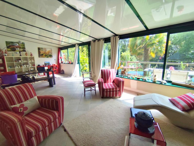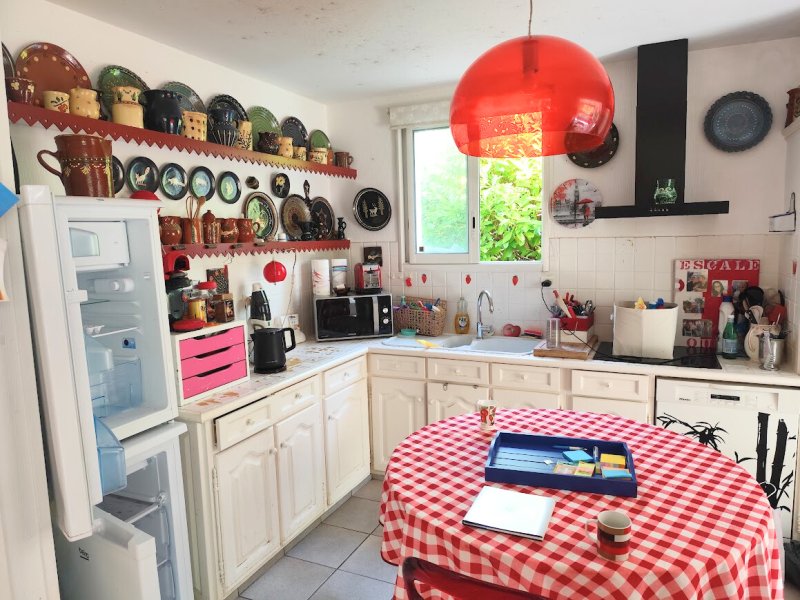 Dans un environnement verdoyant, au calme de son impasse, maison comprenant : Entrée, pièce de vie lumineuse avec cuisine aménagée et équipée ouverte, une véranda dans la continuité de la pièce de vie,