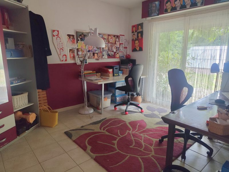deux chambres. A l'étage, deux chambres dont une avec sa salle d'eau, un bureau, une salle de bains.