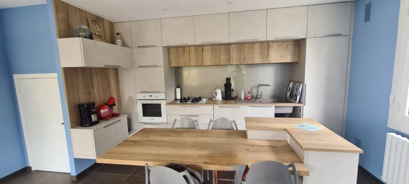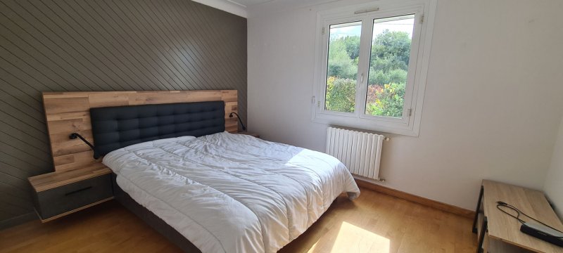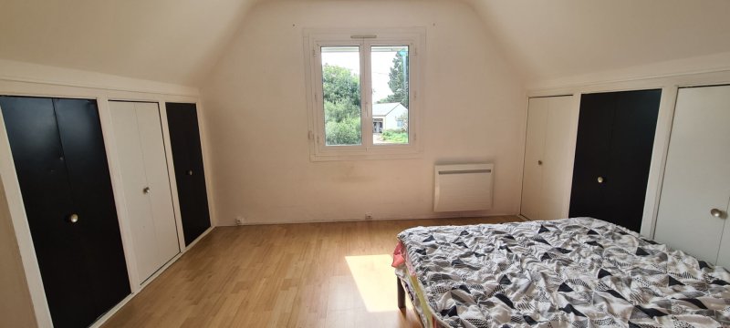 À l'étage, une mezzanine dessert deux chambres, une salle d'eau, ainsi qu'un grenier de 30 m² facilement aménageable selon vos besoins. La maison dispose également de deux garages attenants.
