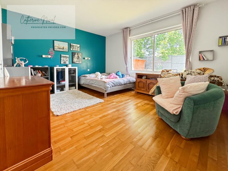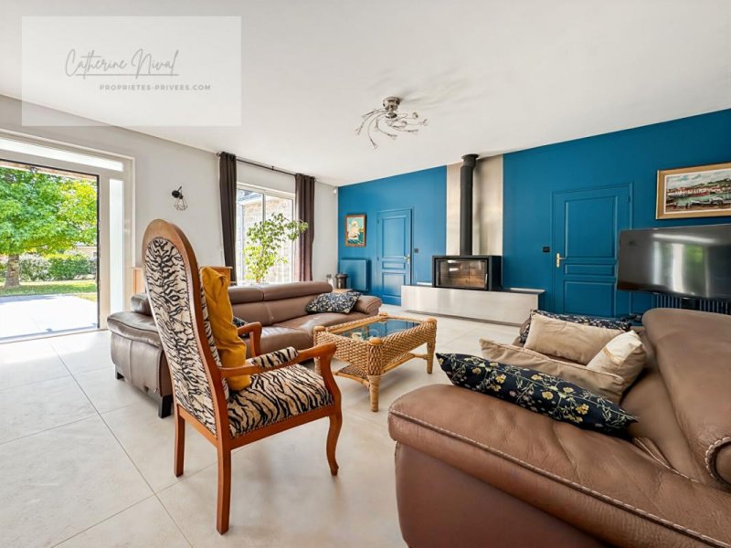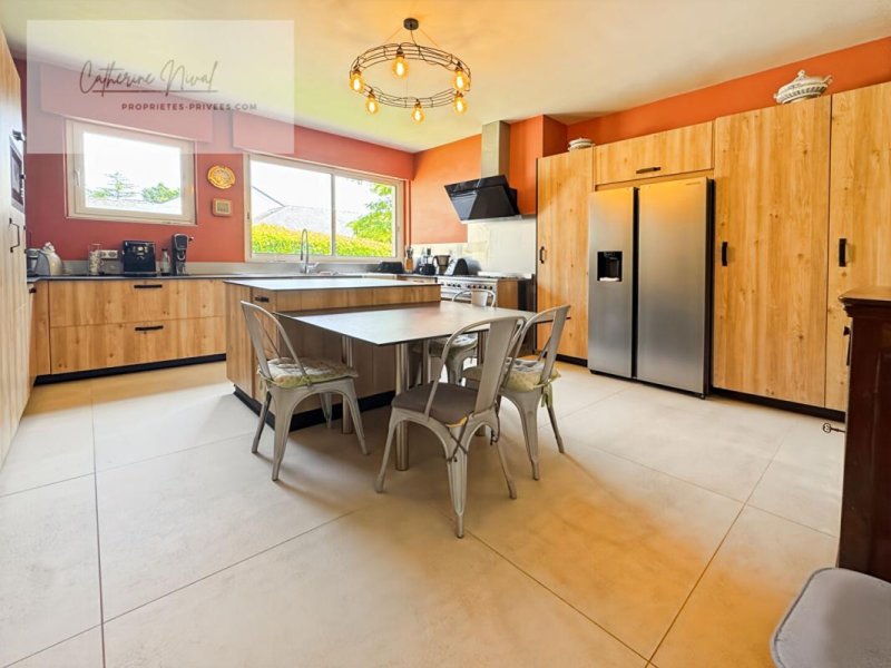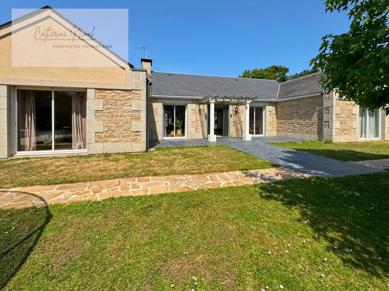 GUERANDE - maison de plain pied. de plus de 200 m2, elle dispose d'une pièce de vie traversante et lumineuse , une grande cuisine aménagée et équipée , une buanderie , 4 belles chambres avec leurs salles de bains , un espace extérieur couvert un . Jardin clos et arboré avec piscine , grand garage et carport.