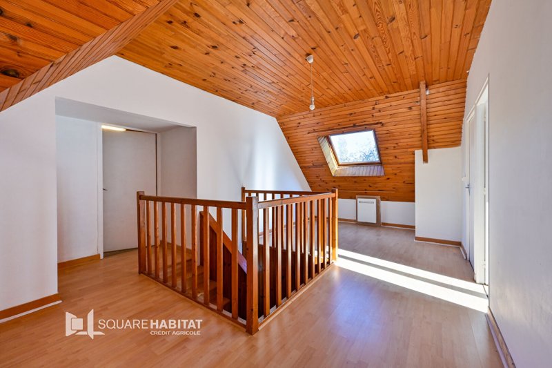 À l'étage, une mezzanine dessert deux chambres, une salle d'eau, ainsi qu'un grenier de 30 m² facilement aménageable selon vos besoins.