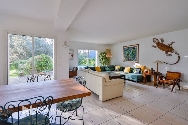 Exposée sud sur paisible jardin clos et arboré de 1581m² avec piscine.