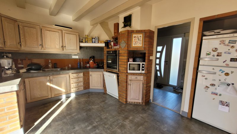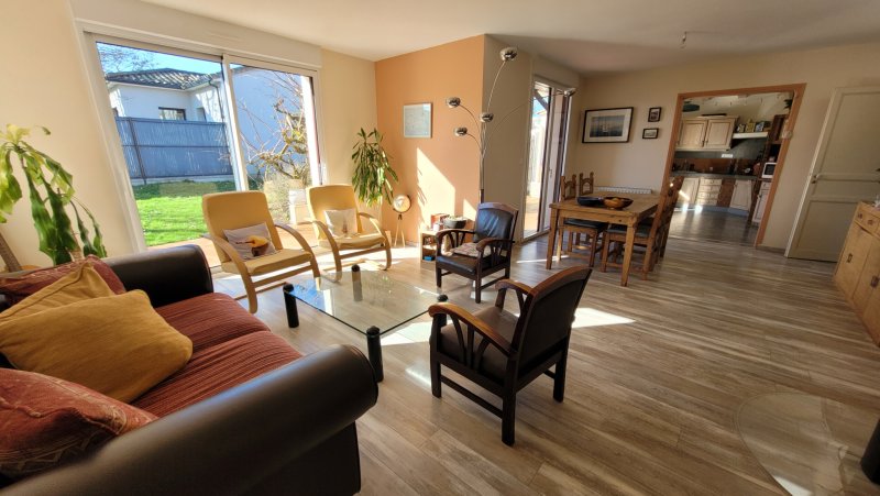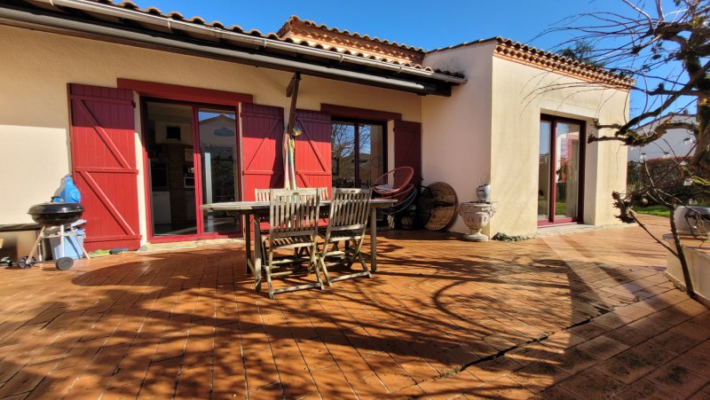 Agréable maison de 119 m2, bien exposée, très lumineuse, sur un beau terrain de 892 m2 Venez découvrir cette agréable maison de plain pied, proche toutes commodités, à Haute Goulaine L'entrée dessert directement une grande cuisine aménagée et équipée, qui communique vers la salle à manger et le salon, ces 3 pièces donnant toutes sur une belle terrasse orientée sud-ouest, sans vis à vis, protégée par une banne pour vos repas d'été Une première chambre (pouvant faire office de bureau ou de salle TV) contient une bibliothèque sur mesure Un couloir dessert ensuite la partie nuit, à savoir 3 chambres dont une avec grand dressing, les 2 autres avec placard; une grande salle d'eau avec douche à l'italienne et un WC indépendant L'ensemble se complète par une buanderie, un garage et une cave contenant la chaudière à condensation (gaz de ville) Aucun travaux à prévoir N'hésitez pas à me contacter pour une visite ou des informations complémentaires : Kristen Denecheau O6 98 48 21 06 (numéro RSAC 810202564) Les informations sur les risques auxquels ce bien est exposé sont disponibles sur le site Géorisques : www.georisques.gouv.fr