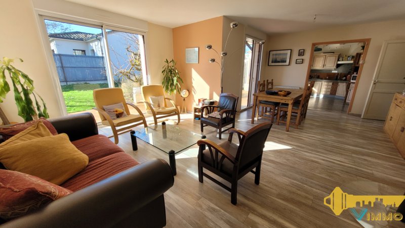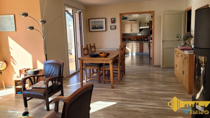Venez découvrir cette agréable maison de plain pied, proche toutes commodités, à Haute Goulaine Emplacement idéal pour cette maison de 119 m2, bien exposée est-ouest, très lumineuse, sur un beau terrain arboré de 892 m2 L'entrée dessert une grande cuisine aménagée et équipée (13 m2) , qui communique vers la salle à manger et le salon (31,60 m2) avec un poêle à bois de 2017. Ces 3 pièces donnent sur une terrasse arborée et orientée sud-ouest, sans vis à vis, protégée par une banne électrique Une première chambre (pouvant faire office de bureau ou de salle TV) contient une bibliothèque sur mesure (9,52 m2) Un couloir emmène vers 3 chambres (11,93 / 9,87 / 10,49 m2) sur parquet massif dont une avec dressing, les 2 autres avec placard; une grande salle d'eau avec douche à l'italienne et un WC indépendant Une buanderie chauffée (11m2 ) permet de créer une deuxième salle de bain, les WC sont existants Un grand garage (26 m2) et une cave contenant la chaudière à condensation (gaz de ville, changée en 2021) complètent le bien Aucun travaux : fenêtres alu et volets motorisés changés en 2019, tableau électrique refait en 2025, démoussage toiture en mars 2026 Charpente traditionnelle, surélévation possible N'hésitez pas à me contacter pour une visite ou des informations complémentaires : Kristen Denecheau O6 98 48 21 06 (numéro RSAC 810202564) Les informations sur les risques auxquels ce bien est exposé sont disponibles sur le site Géorisques : www.georisques.gouv.fr
