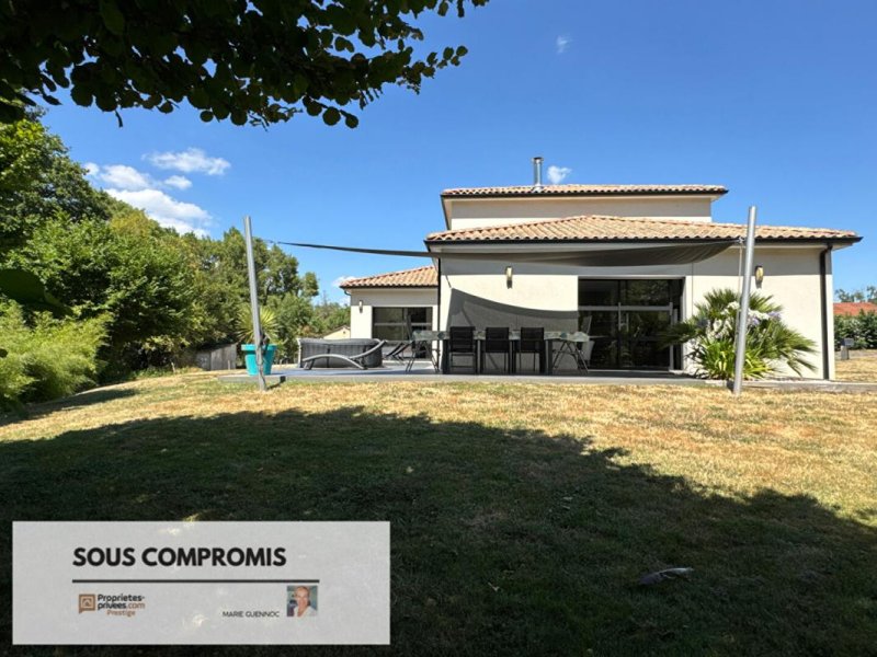 Côté pratique : un double garage avec portes motorisées, une cave à vins, un point d'eau ainsi qu'une pièce indépendante ouverte sur le jardin, idéale pour un espace bien-être ou un atelier. Chauffage au sol dans toute la maison avec pompe à chaleur aérothermique.