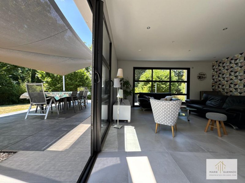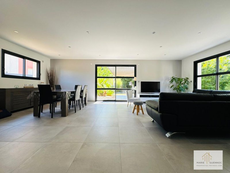 TROP TARD ! SOUS COMPROMIS DE VENTE - Marie GUENNOC vous invite à découvrir cette propriété située dans une impasse paisible, à seulement quelques minutes du Lycée de la Herdrie et des transports. Cette maison contemporaine, construite en 2015, offre un cadre de vie idéal, alliant modernité, confort et fonctionnalité. Dès l'entrée, vous serez séduit par la pièce de vie lumineuse grâce à sa triple exposition, comprenant un salon, une salle à manger et une cuisine ouverte, aménagée et équipée. En complément, une arrière-cuisine avec point d'eau apporte un vrai confort au quotidien.