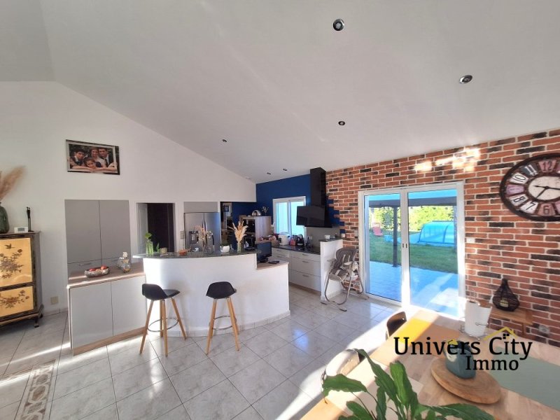 Dans le bourg de Haute-Goulaine, en impasse, découvrez cette maison individuelle de plain-pied offrant un espace de vie généreux. Construite en 2001, avec ses 5 chambres dont une avec sa salle de bain privée et une autre avec son entrée individuelle pouvant servir à une activité libérale, son bureau, sa buanderie, sa lingerie son garage et surtout sa pièce de vie de 78m² elle est idéal pour une familles voulant créer son cocon. La cuisine américaine, aménagée et équipée, est le coeur de cette maison, où les moments de partage et de convivialité prendront tout leur sens. L'espace de vie, lumineux et accueillant, ouvre sur un jardin verdoyant, parfait pour les barbecues estivaux et les jeux des enfants. La piscine construite en 2021, de 8m x 4m chauffée et couverte est un véritable atout, offrant des moments de détente et de fraîcheur à toute heure de la journée. Alors ne manquez pas cette opportunité, une visite s'impose alors pour plus de renseignements et vous accompagner dans votre projet, contactez Gaëtan COILIER EI au 06.26.47.73.49 ou par mail à : g.coilier@univers-city-immo.fr, Prix Net Vendeur 530000, prix FAI 549000 (honoraires à charge acquéreurs), Information d'affichage énergétique sur ce bien : DPE: C (177), GES: C(27). Univers City Immo : L'immobilier Dont Vous Rêviez ! La présente annonce immobilière a été rédigée sous la responsabilité éditoriale de Gaëtan COILIER EI, mandataire indépendant en immobilier (sans détention de fonds), agent commercial de la SAS FXGimmo immatriculé au RSAC de Nantes sous le numéro 877859272, RCP Allianz n°60829771. Le professionnel garantit et sécurise votre projet immobilier. Retrouvez tous nos biens sur notre site internet : www.univers-city-immo.fr « Les informations sur les risques auxquels ce bien est exposé sont disponibles sur le site Géorisques : www.georisques.gouv.fr » Honoraires inclus de 3.58% TTC à la charge de l'acquéreur. Prix hors honoraires 530 000 . Classe énergie C, Classe climat C Montant moyen estimé des dépenses annuelles d'énergie pour un usage standard, établi à partir des prix de l'énergie de l'année 2021 : entre 1670.00 et 2320.00 . Les informations sur les risques auxquels ce bien est exposé sont disponibles sur le site Géorisques : georisques.gouv.fr. Votre conseiller Univers City Immo : Gaëtan COILIER Agent commercial (Entreprise individuelle) RSAC 877 859 272