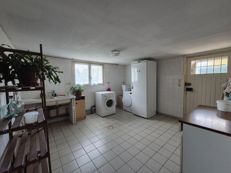 Cette maison propose 174 m² habitables répartis sur deux niveaux, avec un sous-sol total et un espace extérieur entièrement clos.
