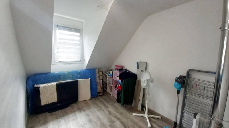 A l'étage : couloir avec placards, 2 petites chambres et une grande chambres, une pièce avec le ballon d'eau chaude et wc.