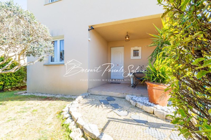 Dans une résidence calme et récente (2013), Sylvie et Pascal BECOURT vous présente une jolie maison (mitoyenne 1 côté par le garage) sur une parcelle de 245 m2, sans vis à vis et entièrement aménagée comprenant 3 chambres dont 1 en rez de chaussée, wc et salle de bains, une pièce de vie avec cuisine ouverte sur séjour et terrasse, et à l'étage 2 chambres une salle d'eau avec wc et une mezzanine pour une surface habitable de 90 m2 environ.