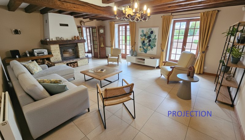 Exclusivité / Houdan 10 mn / Gambais 8 mn / Dans les Yvelines, magnifique propriété de 304 m2 ( 255 m2 habitables ) avec de beaux volumes sur une parcelle de 3000 m2 environ constructible et divisible. Elle se compose au rdc : entrée, double séjour de 41 m2 avec cheminée insert, cuisine, 2 belles chambres, dressing, salle de bain avec douche, buanderie / lingerie, wc séparé. A l'étage : palier desservant une salle de jeux de 46 m2, 3 chambres ( 19 / 21 / 36 m2 ), salle de bain, wc séparé.
