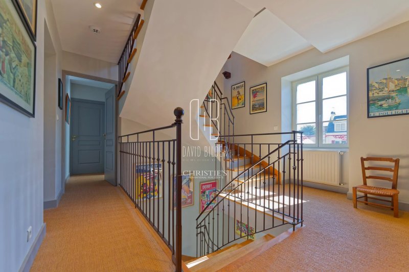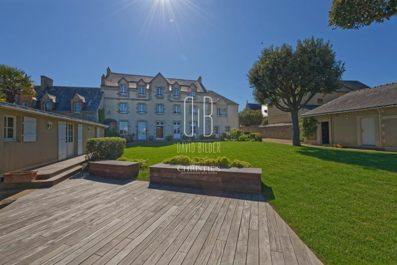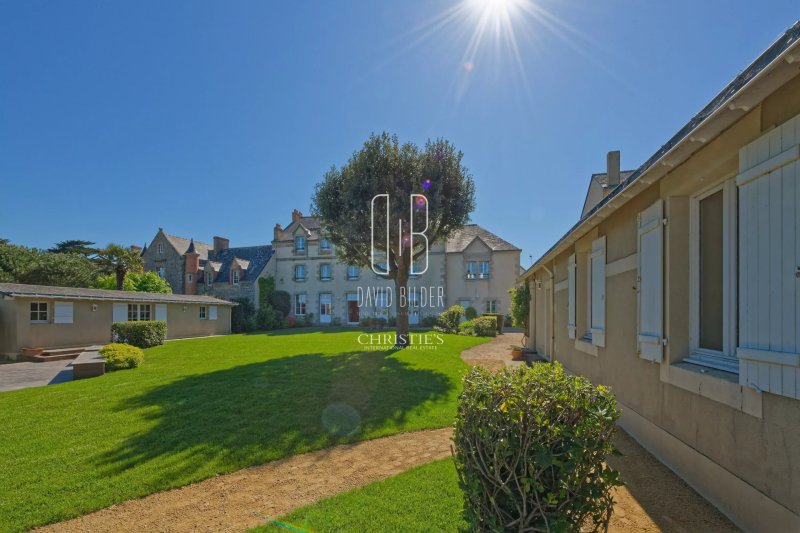 Derrière un mur d’enceinte en pierre, sur la pointe de Penchâteau, une maison de maître 1880 tourne le dos au monde et la façade vers l’Atlantique. Une porte dans le mur s’ouvre directement sur la plage.