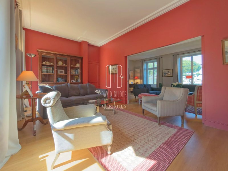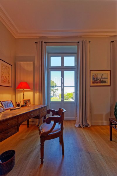 La propriété s’organise autour d’un parc entièrement clos de 1 775 m², planté de grands pins et d’essences maritimes. Dans le mur d’enceinte, une porte piétonne : de l’autre côté, la plage...