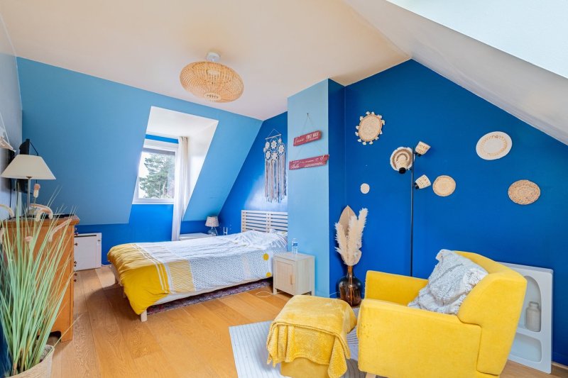 A l'étage on retrouve: une mezzanine avec coin bureau, 2 chambres et une salle d'eau avec WC.