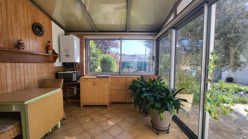Vous y trouverez un séjour traversant avec une véranda donnant sur le jardin, une cuisine indépendante, une chambre, une salle d'eau et des wc.