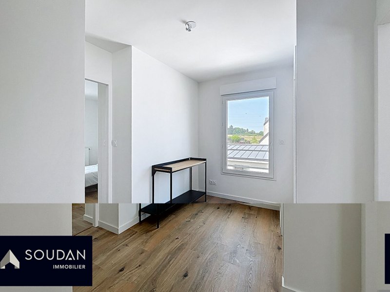 Elle dispose d'une entrée ouvrant sur pièce de vie avec cuisine ouverte, une salle d'eau avec WC au rez de chaussée. A l'étage un palier offrant des possibilités de rangement ou de coin bureau, trois chambres et une salle de bains avec WC.