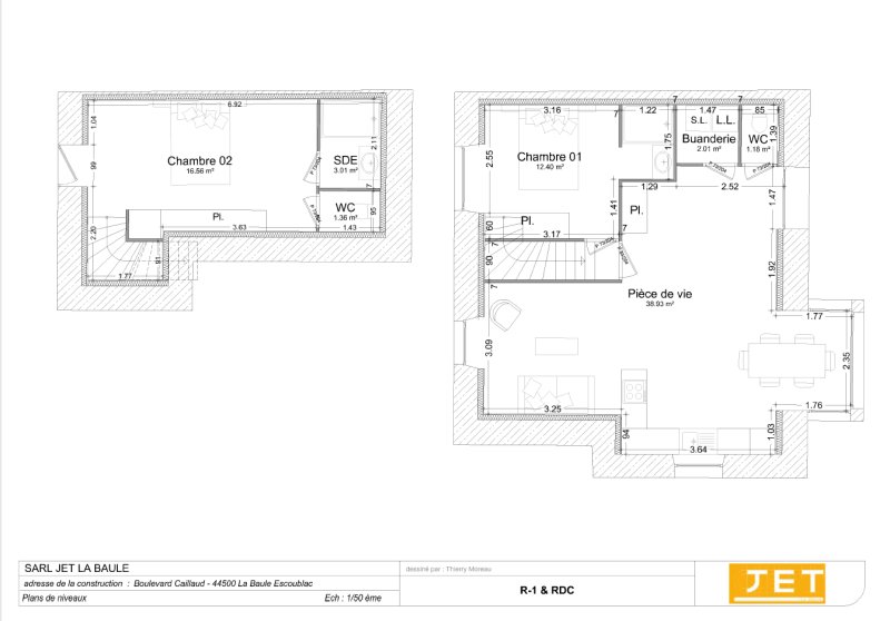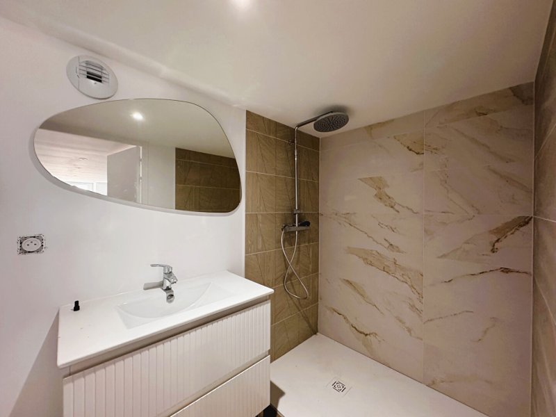 Elle comprend une vie de plain pied avec une magnifique pièce de vie de 39 m2 avec une triple exposition EST, SUD et OUEST, chambre avec salle d'eau privative, coin buanderie, WC indépendant.