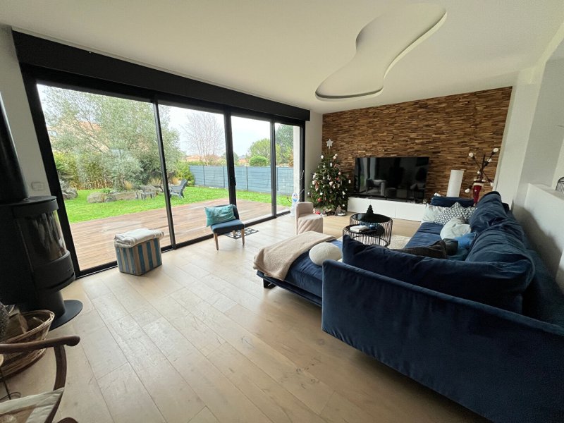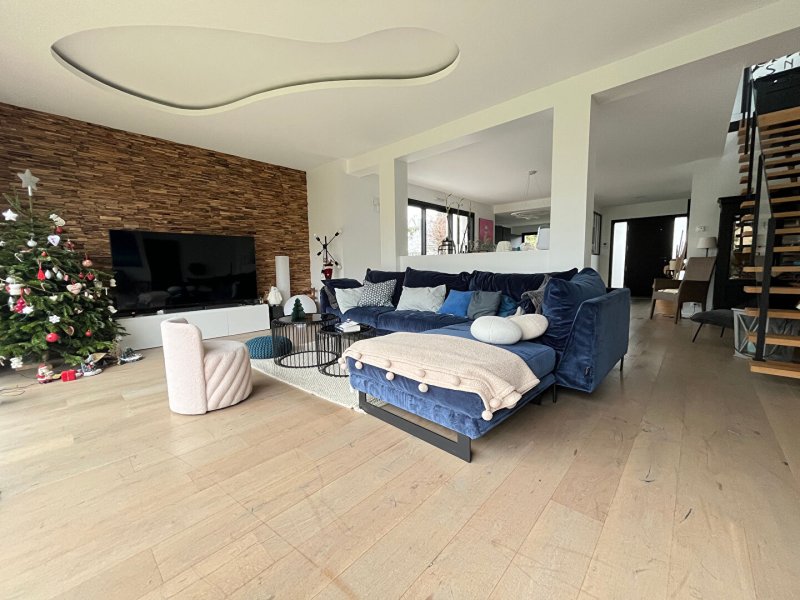 Henriot immobilier vous présente cette maison moderne de 2017 avec vie de plain-pied d'environ 150m². Elle vous séduira par son emplacement, ses volumes et la qualité de ses prestations.