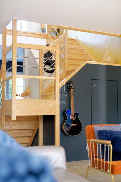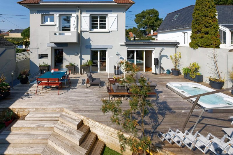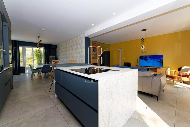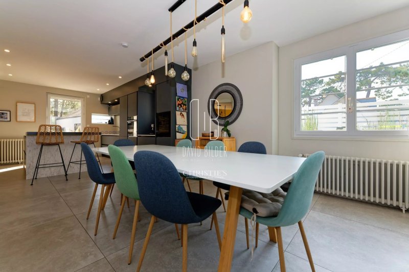 Le rez-de-chaussee s'organise autour d'une grande pièce de vie ouverte - cuisine, salon, salle à manger - lumineuse et directement connectée à la terrasse en bois. Une suite parentale complète ce niveau pour ceux qui vivent de plain-pied. A l'étage, trois chambres aux atmosphères distinctes et soignées accueillent la famille ou les invités avec caractère.