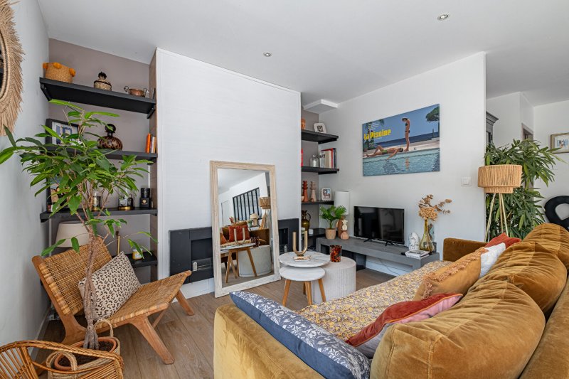 Dès l'entrée, vous découvrez un hall accueillant menant à un superbe espace de vie de 54 m², baigné de lumière, offrant un cadre convivial et chaleureux. La cuisine, entièrement aménagée et équipée, s'intègre parfaitement à cet espace, complétée par une buanderie fonctionnelle.