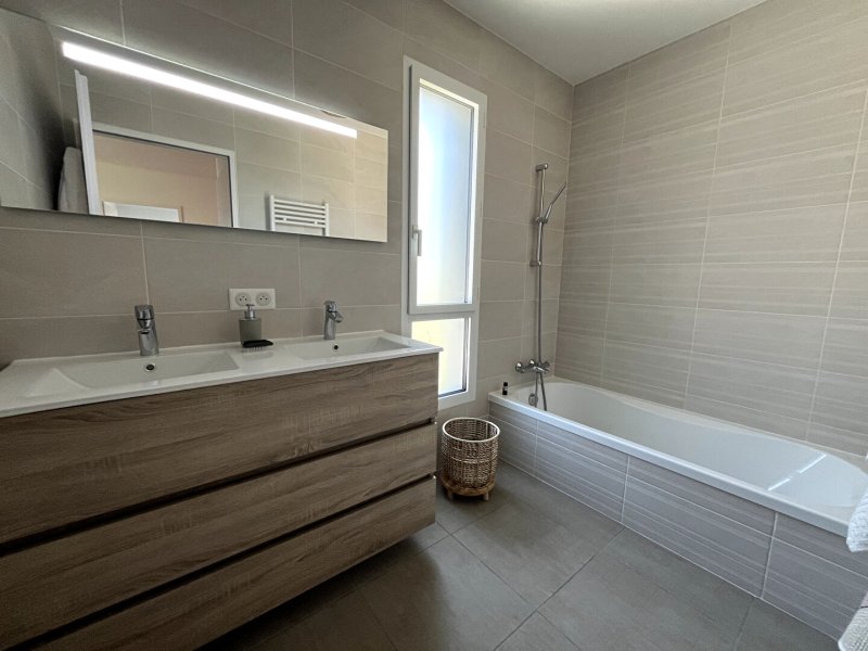 Coup de coeur pour cette belle contemporaine de 2020 offrant plus de 150 m2 hab, hyper lumineuse et ouvrant sur terrasse et jardin. Elle se compose au RDC, d'une vaste réception avec cuisine aménagée et équipée ouverte pour une surface de plus de 60 m2 , donnant sur une belle terrasse plein sud, une suite parentale avec SDE et dressing , WC .