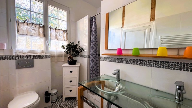 Sur une parcelle d'environ 340 m², charmante maison bauloise des années 40 entièrement rénovée, offrant 104 m² habitables au total avec dépendance aménagée.