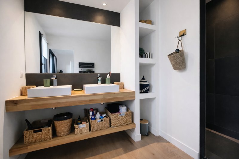 La maison offre une vie de plain pied grâce à la suite parentale (dressing et salle d'eau), WC invités, buanderie.