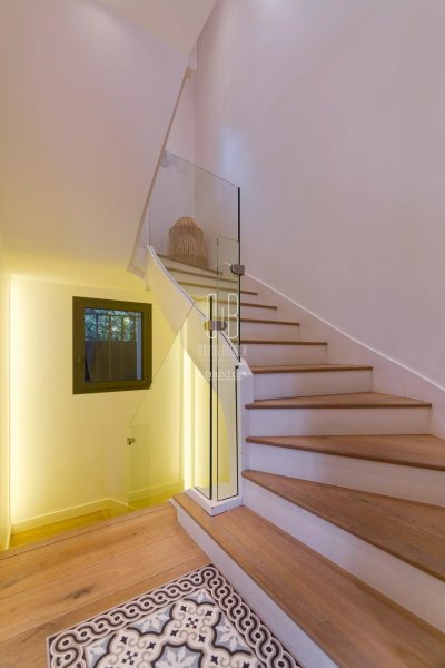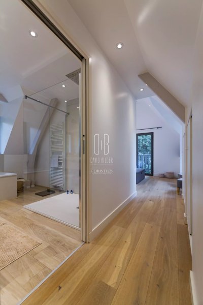 À l'intérieur, Sur un espace de vie de 80m2, parquet, cheminée, escalier sculptural, cuisine sur-mesure haut de gamme et finitions soignées dans chaque pièce témoignent d'une rénovation menée sans compromis.