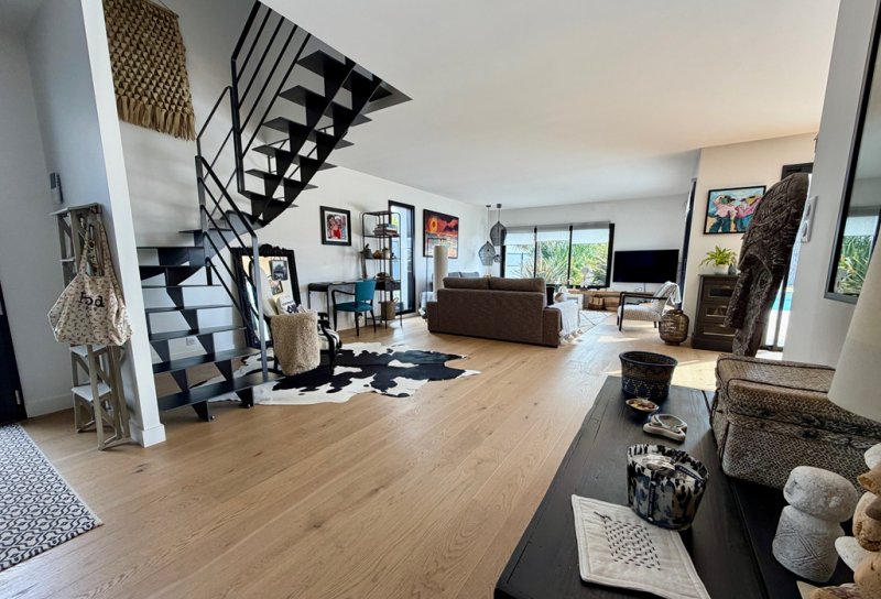Les volumes sont généreux et parfaitement pensés : au rez-de-chaussée, une spectaculaire pièce de vie de 80 m² avec salon, séjour et cuisine aménagée et équipée, ouverte sur la terrasse, la piscine et le pool house, pour une vie résolument tournée vers l'extérieur.