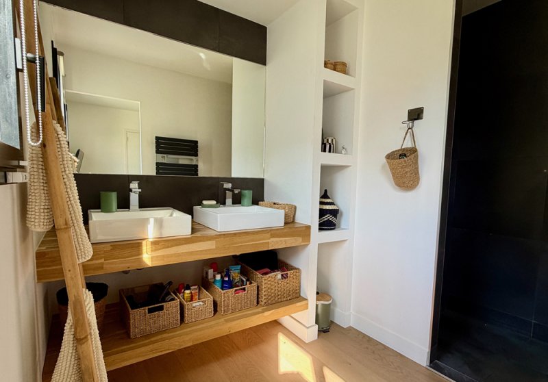 En parfait état, cette propriété séduit immédiatement par sa luminosité remarquable, ses expositions idéales et son implantation optimisée sur une parcelle orientée Sud-Ouest. À l'abri des regards, son superbe jardin clos et arboré, plein Sud, offre un véritable écrin de sérénité.