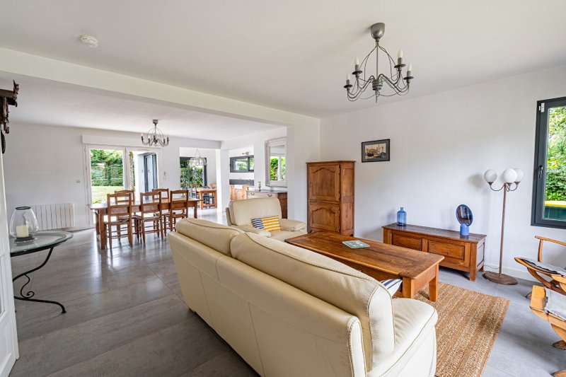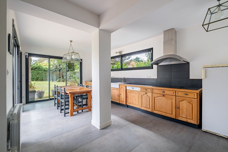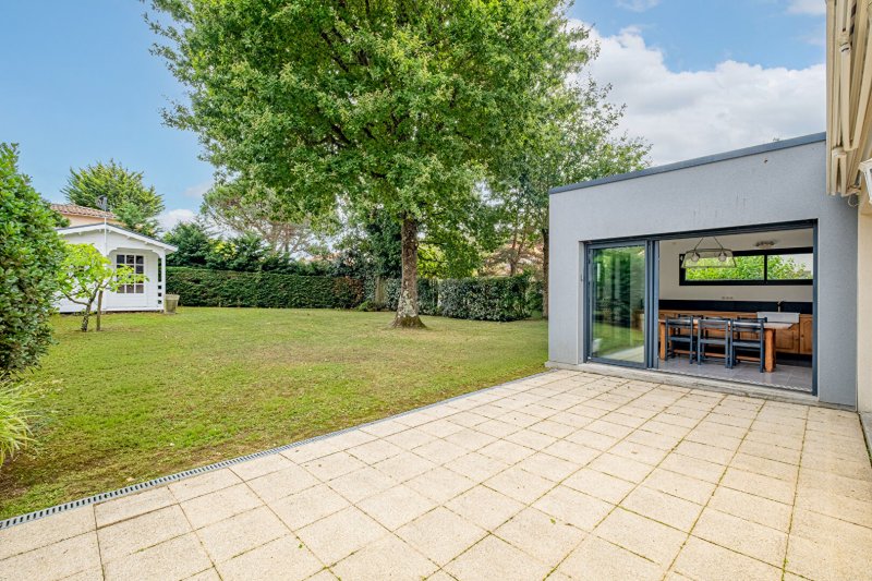 Le tout s'accompagne d'un garage avec espace technique, et d'un jardin arboré soigneusement entretenu, agrémenté d'une terrasse exposée plein sud.