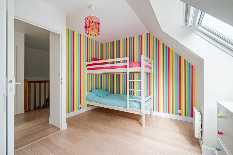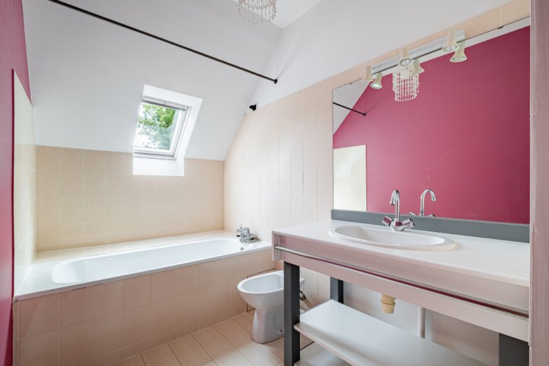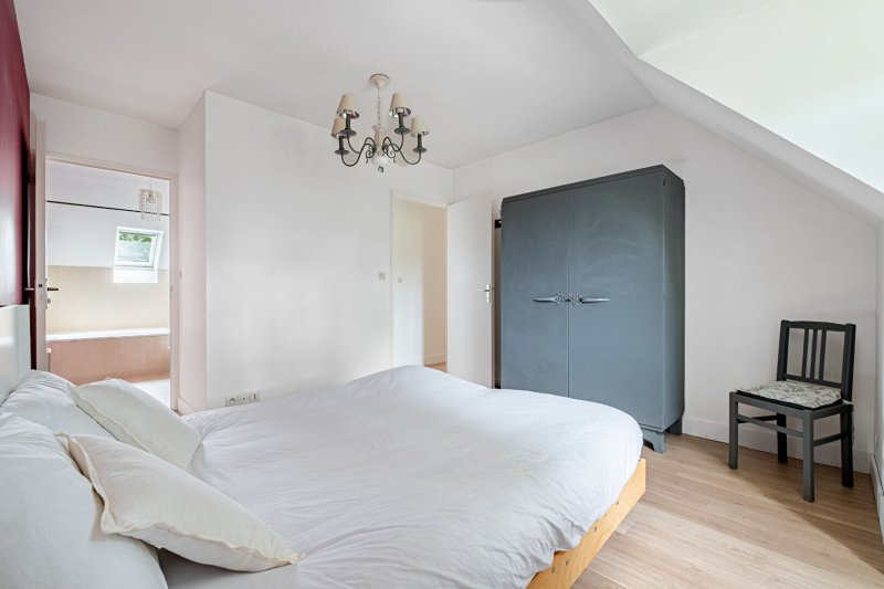 À l'étage, un palier dessert une grande chambre avec sa salle de bains, trois chambres, une salle d'eau et des toilettes séparées, parfait pour une vie de famille confortable.