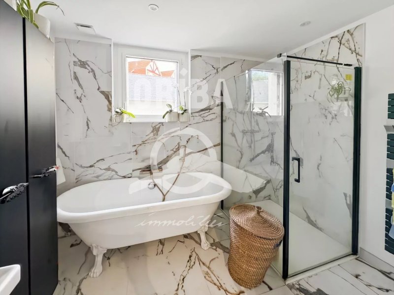 Situation idéale et beaux volumes pour cette maison agréable et lumineuse. A 500 Mètres de la plage et 800 mètres des commerces, maison rénovée en 2024 comprenant : Salon, Salle a manger, grande cuisine aménagée équipée, buanderie, une chambre avec salle d'eau privative, un WC. Au 1er étage : 4 chambres, une salle de bains avec WC. Au second étage : 1 chambre, mezzanine, bureau, WC. Carport. Jardin privatif. Jouissance privatif d'un jardin d'environ 400 m2.