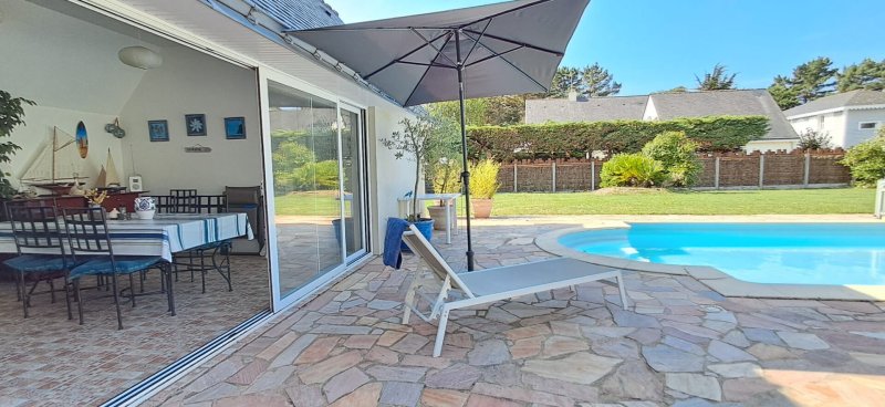 chauffage géothermie, aspiration centralisée, alarme. Piscine et cabanon de jardin complètent cette maison .