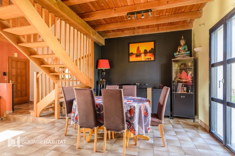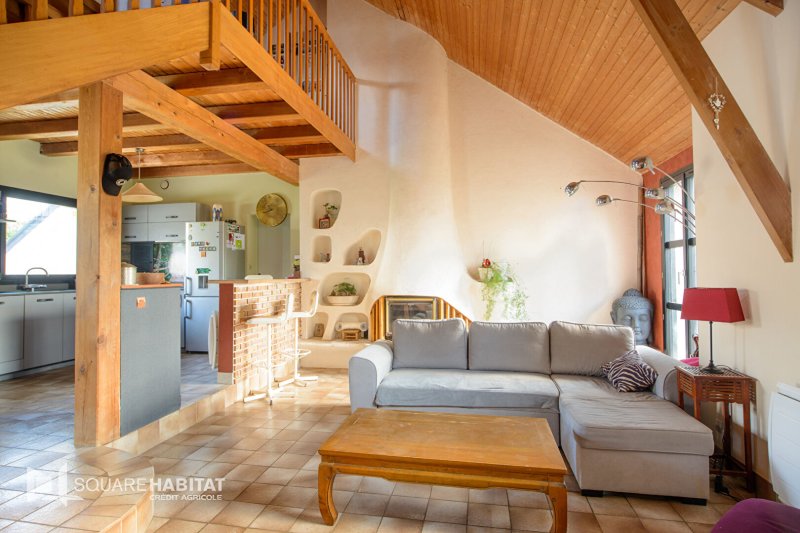 Elle saura vous charmer avec sa belle pièce de vie et sa cheminée centrale, ses volumes tant intérieur qu'extérieur.