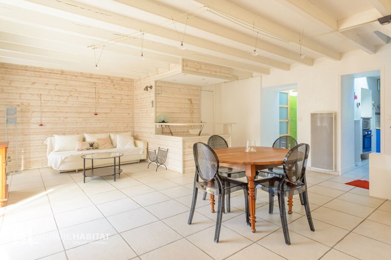Vous serez séduit par sa grande pièce de vie avec ses poutres et la lumière traversante .