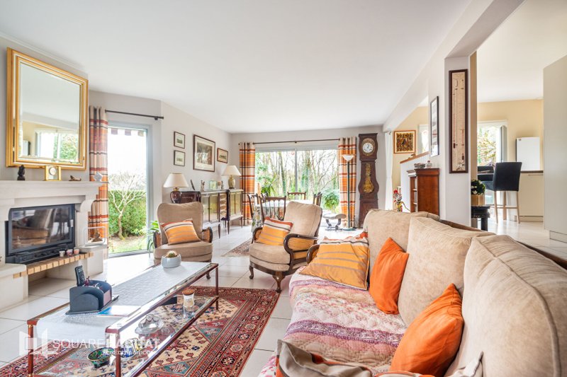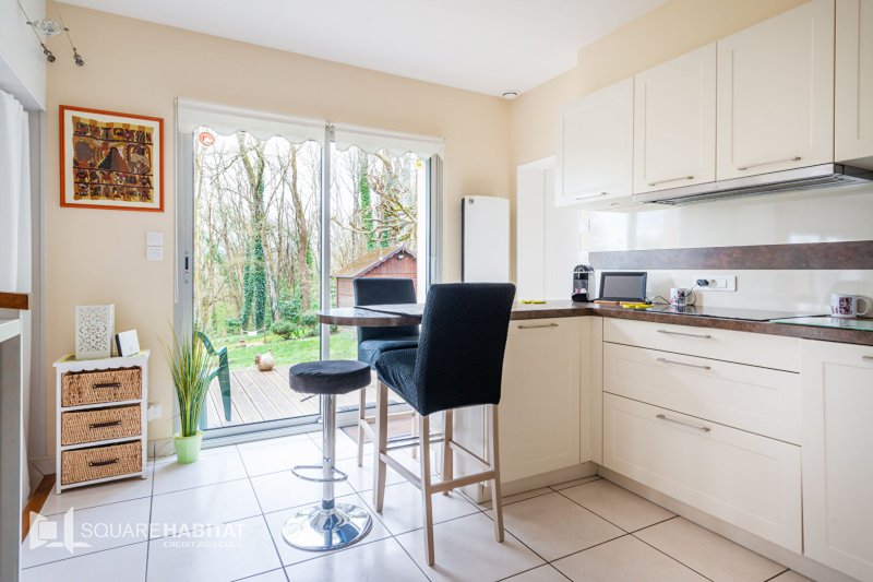 Elle comprend une belle pièce de vie ouverte sur une cuisine entièrement aménagée et équipée, donnant accès au jardin cosy, sans aucun vis-à-vis. une arrière cuisine et un garage.