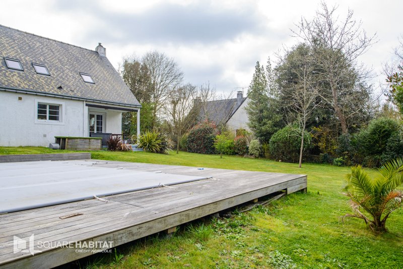 Un jardin généreux et verdoyant où il fait bon se détendre avec piscine pour profiter des beaux jours en toute sérénité.