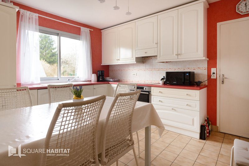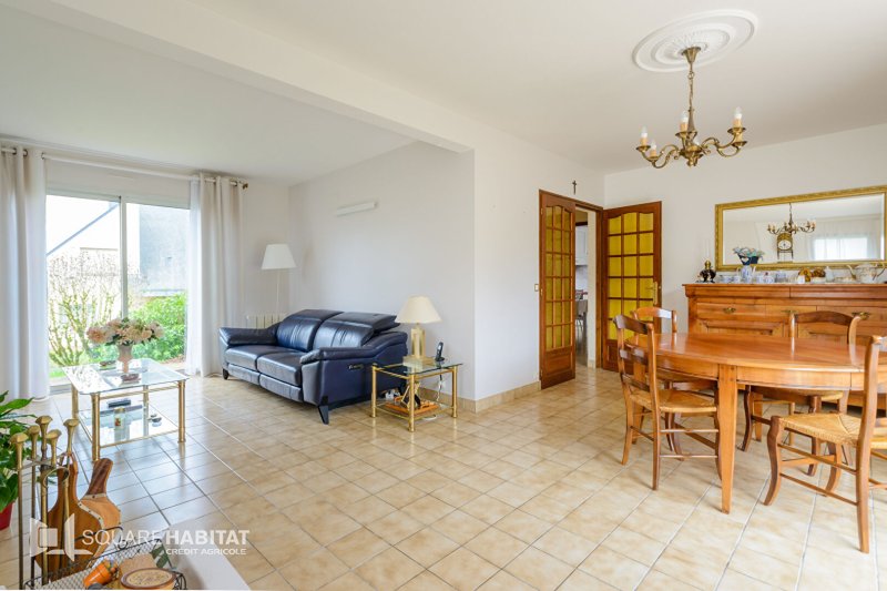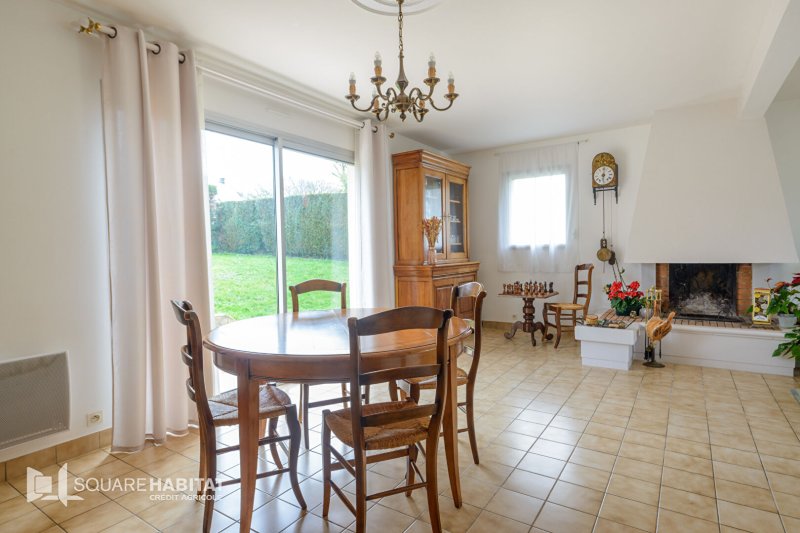 Elle se compose, au rez-de-chaussée, d'une entrée avec placard, de WC indépendants, d'un spacieux salon-séjour lumineux avec cheminée, d'une cuisine aménagée et équipée séparée, ainsi que d'une chambre avec salle d'eau privative, idéale pour une vie de plain-pied. Un garage double complète ce niveau.
