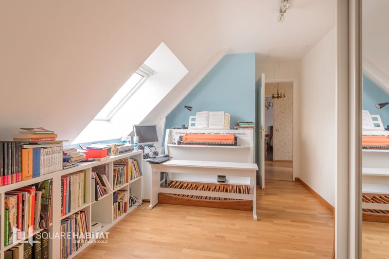 À l'étage, un dégagement dessert quatre chambres (dont une pouvant faire office de bureau) et une salle de bains avec WC.