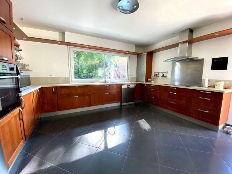 Vous serez surpris par les volumes de cette contemporaine. D'une superficie de 235 m2, elle se compose notamment au rez de chaussée d'un impressionnant hall d'entrée desservant une pièce familiale de 50 m2 avec cuisine aménagée et espace repas, un salon cosy donnant aussi sur le jardin, 2 chambres spacieuses et une salle de bains. A l'étage vous trouverez 4 belles chambres et une salle d'eau. Un sous sol complet avec garage, atelier. Un jardin agréablement paysager de 1700m2 entièrement clos et sans vis à vis. CLASSE ENERGIE : D - CLASSE CLIMAT : B. Montant estimé des dépenses annuelles d'énergie pour un usage standard : entre 3340 EUR et 4520 EUR (prix moyens de l'énergie indexés sur les années 2021, 2022 et 2023 - abonnement compris). Les informations sur les risques auxquels ce bien est exposé sont disponibles sur le site Géorisques :www.georisques.gouv.fr