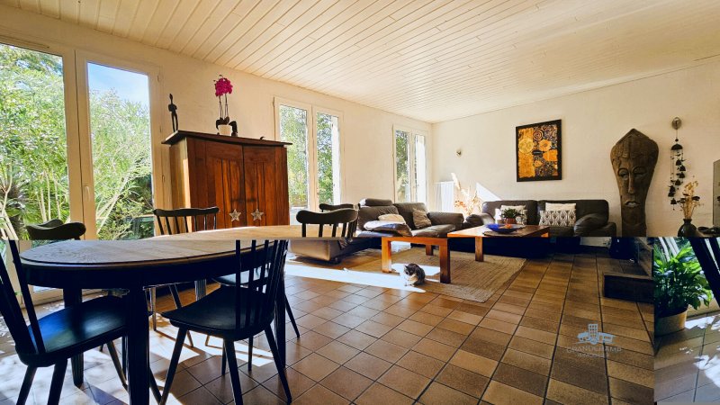 Dès l'entrée, vous serez séduit par la luminosité de la pièce de vie, tournée vers le sud grâce à ses trois grandes baies vitrées. Le séjour, réchauffé par un poêle à bois récent, peut être facilement agrandi (jusqu'à 40 m²) en ouvrant sur une des chambres attenantes.