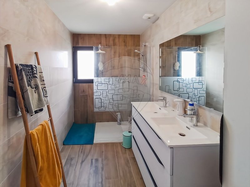 Côté nuit, trois chambres avec rangements, une salle d’eau moderne avec double vasque et un WC indépendant complètent l’ensemble.