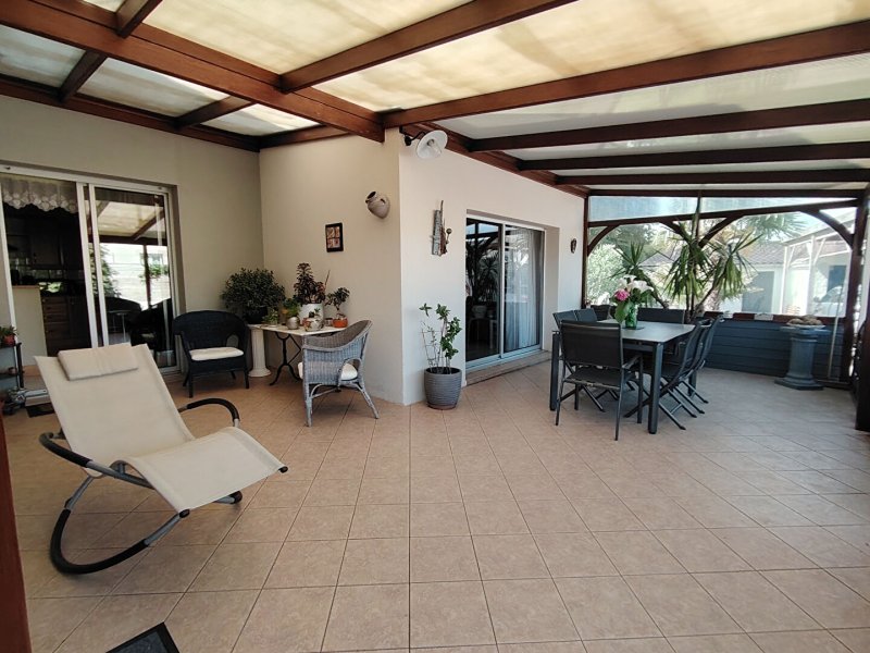 * au RDC: une belle pièce de vie avec cheminée insert, semi-ouverte sur une cuisine aménagée et équipée, un coin nuit desservant 3 chambres et une salle de bains. Vous trouverez également une salle de jeux ainsi qu'un cellier. La terrasse entièrement couverte est accessible depuis le salon et la cuisine.